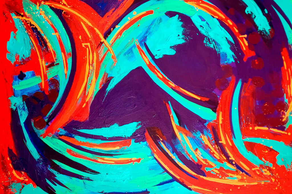Pintura abstracta en acrílico guiada por música suave, invitando a dejar fluir la emoción sin control racional, reflejando esperanza, transformación y fe.